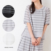 涼しげな透かしボーダーとシフォンの重ね着風プルオーバー。