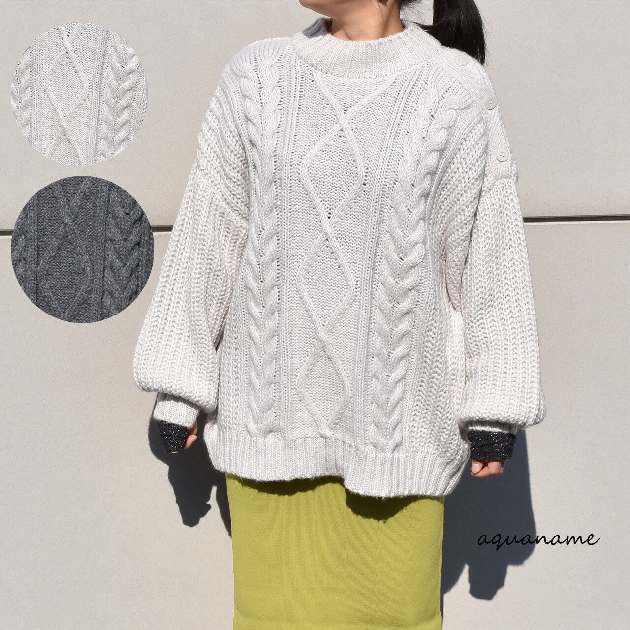 ケーブル編みニット。